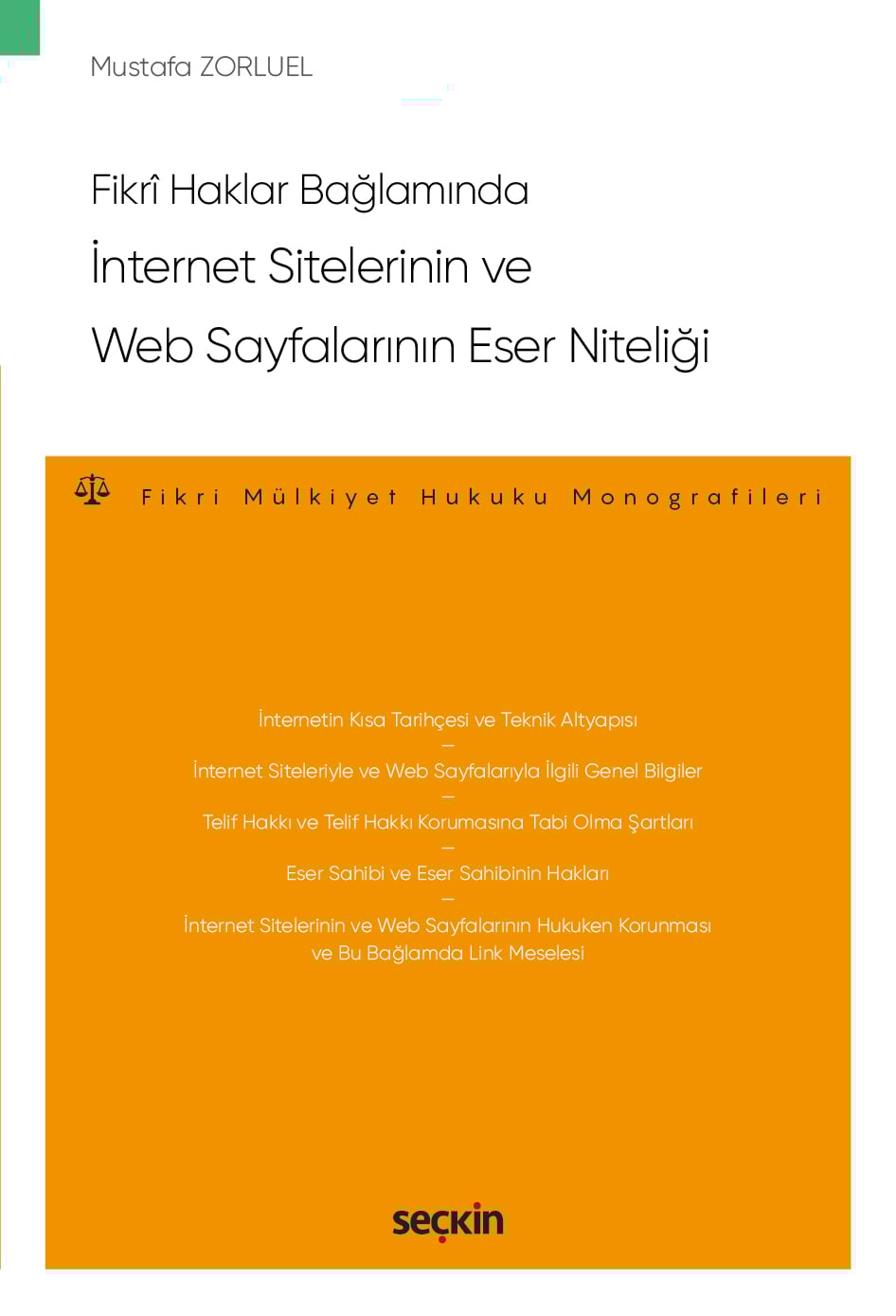Kitapta, fikrî haklar bağlamında internet sitelerinin ve web sayfalarının eser niteliği konusu ele alınmıştır. Birinci bölümde; internetin kısa tarihçesi ve teknik altyapısı incelenmiş, internet siteleriyle ve web sayfalarıyla ilgili genel bilgiler verilmiştir. Böylece, internet sitelerinin ve web sayfalarının doğru bir şekilde değerlendirilmesine yönelik temel bir anlayış oluşturulmaya çalışılmıştır. İkinci bölümde; internet sitelerinin ve web sayfalarının hukuki korumaya tabi tutulmasıyla ilgili daha sonraki kısımlarda yapılacak açıklamalara temel teşkil etmesi açısından, telif hakkı, telif hakkı korumasına tabi olma şartları, eser sahibi ve eser sahibinin hakları hakkında açıklamalarda bulunulmuştur. İnternet sitelerinin ve web sayfalarının hukuken korunmasında uygulanacak olan rejim ve kurallarla ilgili ortaya atılan en kapsamlı öneri, bunların, 5846 sayılı Fikir ve Sanat Eserleri Kanunu anlamında, eser sayılmalarına yöneliktir. Bu nedenle kitabın üçüncü bölümünde; 5846 sayılı Fikir ve Sanat Eserleri Kanunu'nu esas alınarak, internet sitelerinin ve web sayfalarının telif hakkı korumasından yararlanmasıyla ilgili açıklamalara yer verilmiştir.