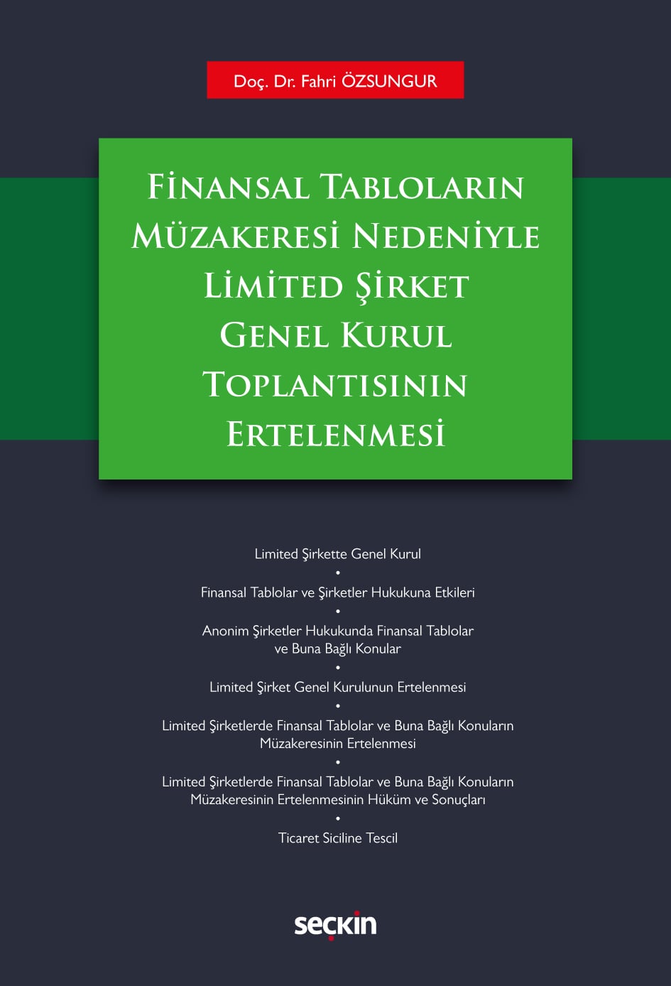 - Bu kitap Türk anonim şirketler hukukunda benimsenmiş olan finansal tabloların müzakeresi ve buna bağlı konuların müzakeresinin azlığın istemi üzerine ertelenmesi müessesesinin limited şirketlere uygulanabilirliği sorununu ele almaktadır. Limited şirketlerin anonim şirketlere atıfta bulunulmuş olan şirketlerde genel kurulun azlığın çağrı ve öneri hakkı, toplantıya çağrı, öneriler, gündem, genel kurul tutanağı, genel kurula yetkisiz katılma, hazırlık önlemleri, çağrısız genel kurul konuları kitapta ayrıntılı olarak ele alınmıştır. Kitabın temel konusu İsviçre, Fransız ve Alman Hukuku düzenlemeleri dikkate alınarak geniş bir çerçevede ortaya konulmuştur. Limited şirket ve genel kurul, finansal tabloların finansal ve hukuksal analizi, limited şirket genel kurul kararlarının ertelenmesi, limited şirketlerde finansal tabloların müzakeresinin ertelenmesinin hüküm ve sonuçları kitapta ayrıntılı olarak uygulamada yaşanan sorunlar dikkate alınarak işlenmiştir. Konu başlıkları, uygulamada yaşanan sorunlara karşı ileri sürülen öneriler İsviçre, Fransız, Alman Hukuku, şirketler hukukunun temel prensipleri, Kurumsal Yönetim İlkeleri, Uluslararası Finansal Raporlama Standartları dikkate alınarak titizlikle ortaya konulmuştur. Kitabın uygulayıcılara, doktrin ve yargı kararlarına katkı sağlayacağını temenni ediyorum.